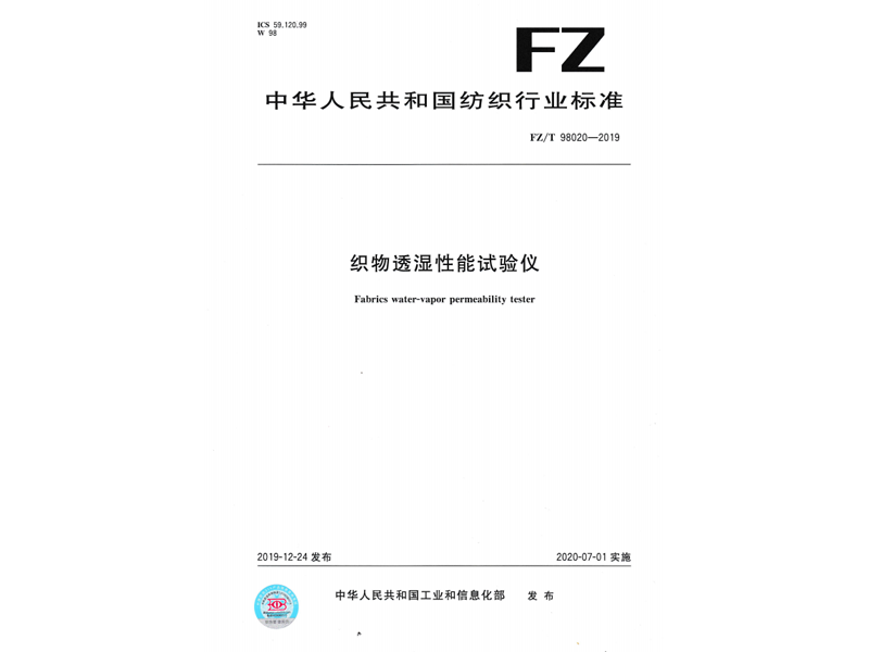 參與起草《織物透濕性能試驗儀》(FZ/T 98020-2019),該標(biāo)準(zhǔn)由中華人民共和國工業(yè)和信息化部于 2019-12-24 發(fā)布