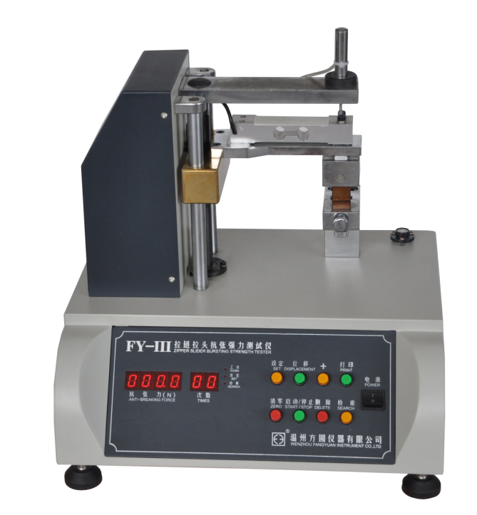 FY-III拉鏈拉頭抗張強(qiáng)力測試儀 QB/T 2171,QB/T 2173,QB/T 2172,ASTM D2061等標(biāo)準(zhǔn)。